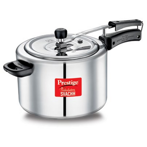 BASE: Prestige Popular comes with an Aluminium base which is thick and machine pressed. The slight concave bottom ensures shape is retained for longer.;BODY: Prestige Popular is an outer lid pressure cooker made from virgin aluminium which is light in weight and long lasting. The outer lid feature is suitable for both separator cooking and direct vessel cooking.