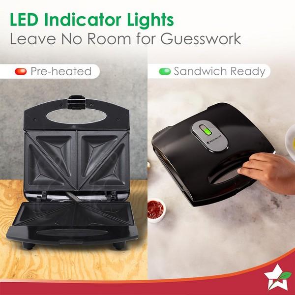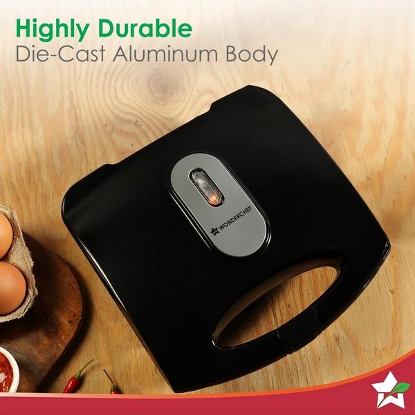 Wonderchef Acura Plus Sandwich Maker for tasty and healthy sandwiches made easily at home. The non-stick coating of the plates for low-oil healthy cooking