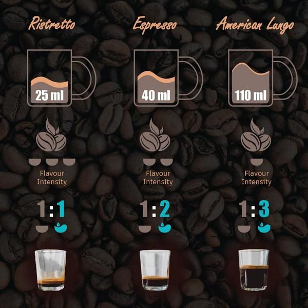 VERSATILE SHOT OPTIONS: Enjoy the intense and concentrated Ristretto shot (25ml) preferred by Italians, indulge in the classic French-style Espresso (40ml), or opt for the longer American Lungo (110ml) for a milder flavor. Use the included Frother to masterfully froth milk and add the perfect touch of magic to your creations.
