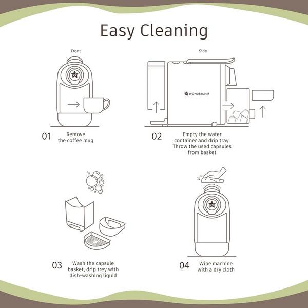 EASY CLEANING: Features a patented capsule ejection system that collects used capsules in a convenient container, ensuring a mess-free brewing experience. The removable drip tray makes cleaning a breeze, allowing you to maintain the machine's pristine condition with ease.